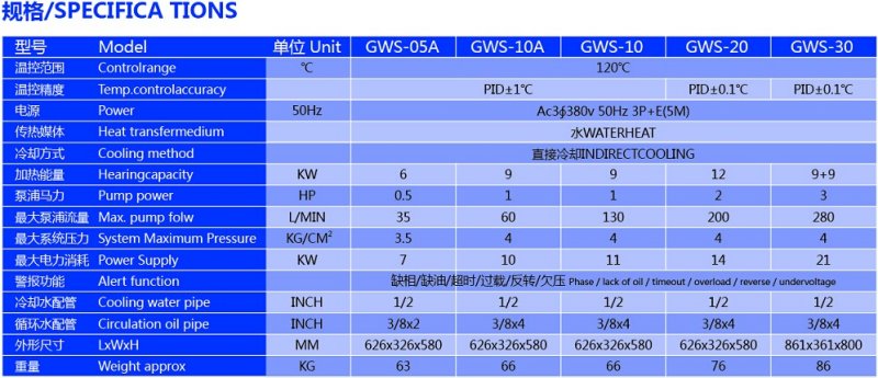 九、注塑水式模溫機規格參數
